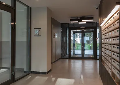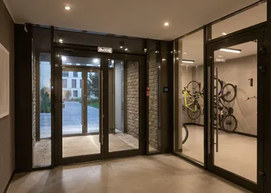 В домах Брусники прозрачные сквозные подъезды. Жители видят, что происходит внутри подъезда и снаружи во дворе. Вход находится на уровне земли. Это удобно велосипедистам, мамам с колясками и пожилым людям.
